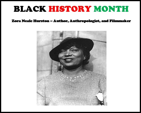 Zora Neale Hurston (January 7, 1891 – January 28, 1960) was an American author, anthropologist, and filmmaker. She portrayed racial struggles in the early-1900s American South and published research on hoodoo. The most